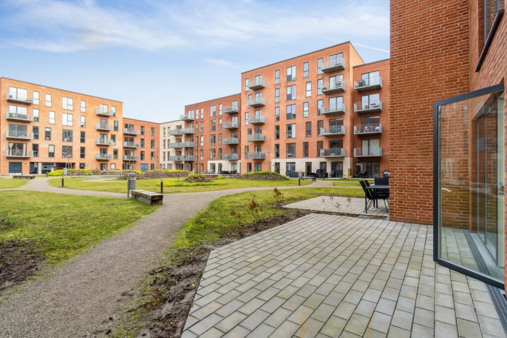 Fra køkken-alrummet træder du direkte ud på din egen terrasse eller altan, hvor du kan nyde solen og udsigten til livet i Brokvarterets mange hyggelige områder. Altanerne er designet med gitter i sort lakeret stål og har dynamiske former, så ikke alle er ens.